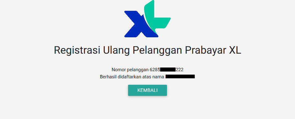 Selamat, proses registrasi ulang kartu prabayar Anda telah berhasil. NAMA : (NAMA KAMU)